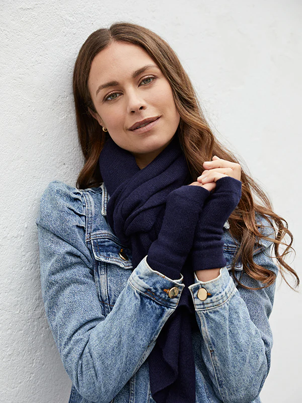 - Navy cashmere chunky wrist warmers